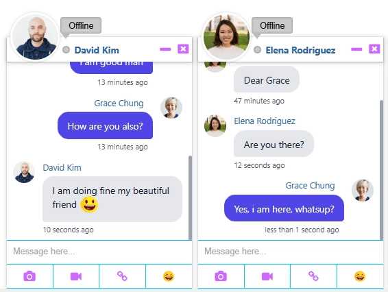 Everyone loves the gmail or facebook inline chat system where conversation has been made easy with amazing features and design. This chat system helps you to easily integrate the Gmail/Facebook style of chat into your existing website without much effort since we have made everything easier for the end users.