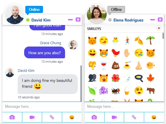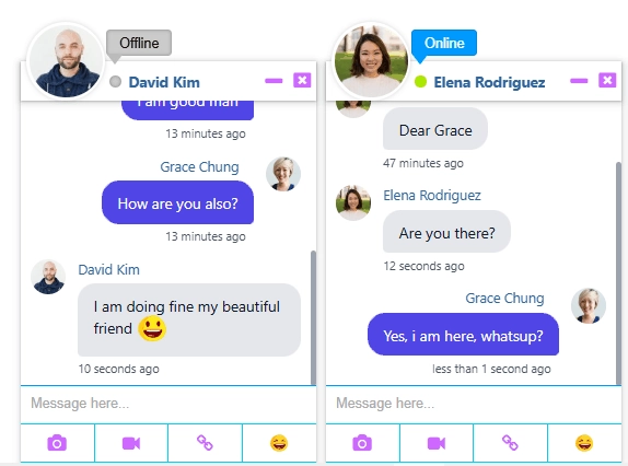 Everyone loves the gmail or facebook inline chat system where conversation has been made easy with amazing features and design. This chat system helps you to easily integrate the Gmail/Facebook style of chat into your existing website without much effort since we have made everything easier for the end users.